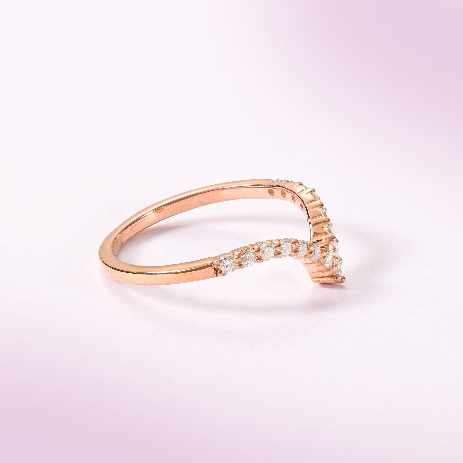 A sleek V-shaped chevron band, adorned with round brilliant-cut lab-grown diamonds. Designed to perfectly complement an engagement ring or stand out as a chic, elegant piece on its own.