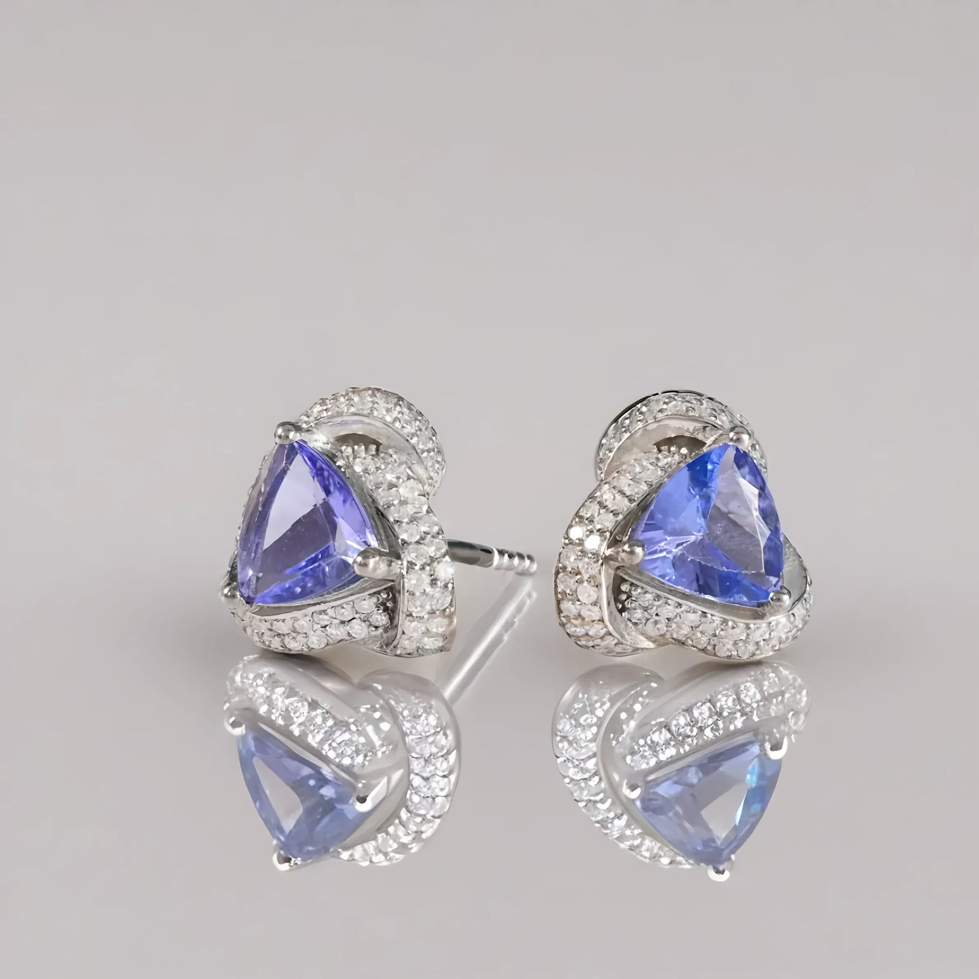 Vivid color and radiant sparkle unite as tanzanite is embraced by sweeping curves of dazzling diamonds, creating earrings of timeless allure.